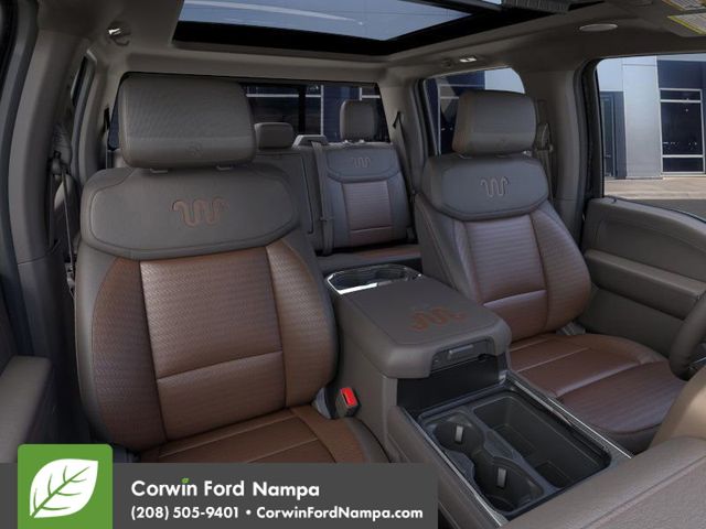 Distinctive Kingsville leather heated/ventilated power front seats and heated rear seats define our King Ranch cabin, complemented by a heated Kingsville leather power steering wheel, dual-zone automatic climate control, power-adjustable pedals, and a power sliding rear window. Powerful technologies enhance every drive with a 12-inch touchscreen, a 12-inch driver display, connected navigation compatibility, wireless charging, WiFi capability, wireless Apple CarPlay and Android Auto, voice recognition, and the premium B&O Unleashed sound system for an immersive listening experience.