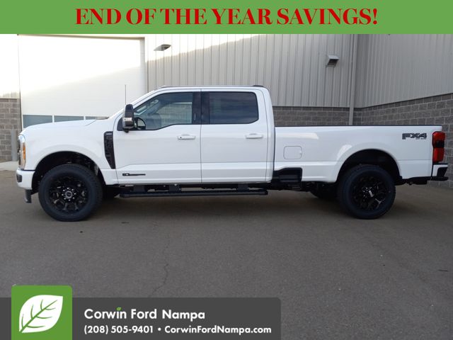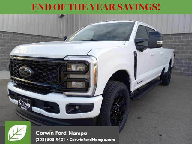Built for strength and precision, our diesel-driven 2026 Ford F-350 Lariat Crew Cab 4X4 in Oxford White conquers demanding tasks with refined power. Motivated by a TurboCharged 6.7 Liter PowerStroke Diesel V8 serving up 475hp and 1050lb-ft of torque to a 10 Speed Automatic transmission. This Four Wheel Drive truck complements that muscle with a rugged suspension for an easy ride. Equipped for dealing with the daily grind, our bold Ford F-350 boasts LED lighting, fog lamps, PowerScope trailer mirrors with built-in spotlights, chrome bumpers, a power-lock/remote-release tailgate, and alloy wheels.