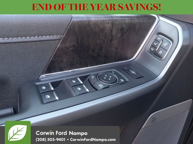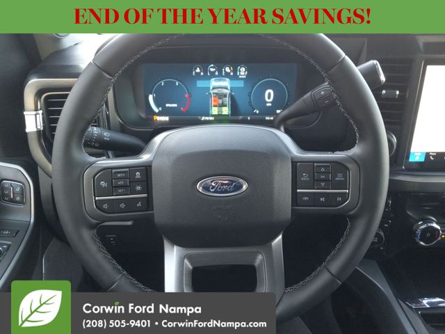 Our Lariat cabin levels up with the rewarding comfort of heated/ventilated leather power front seats, a heated leather power steering wheel, dual-zone automatic climate control, power-adjustable pedals, 120V/400W outlets, and a power sliding rear window. The interior resembles a mobile command post with a 12-inch touchscreen, a 12-inch driver display, connected navigation, wireless charging, WiFi compatibility, Apple CarPlay/Android Auto, Bluetooth, voice recognition, and B&O audio.
