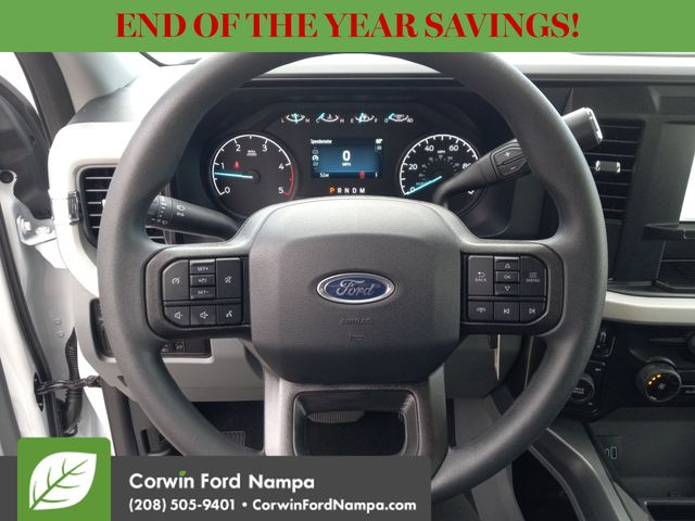 Engineered for all-day comfort, our XLT cabin is built to make every task easier. It features supportive cloth seats, a multifunction steering wheel, air conditioning, power locks and windows, cruise control, 12V and 120V outlets, and keyless entry. Modern connectivity comes through the SYNC 4 system with an 8-inch touchscreen, a 4.2-inch driver display, WiFi compatibility, wireless Apple CarPlay and Android Auto, Bluetooth, voice command, and an AM/FM/MP3 stereo that keeps you in control wherever the job takes you.
