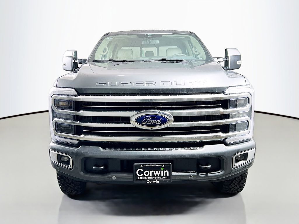 Built for those who demand more, our diesel-driven 2026 Ford F-350 Super Duty Platinum Crew Cab 4X4 with the Plus and Tremor Packages in Carbonized Gray Metallic delivers relentless power and precision for every challenge. Motivated by a TurboCharged 6.7 Liter High Output PowerStroke Diesel V8 producing 500hp and 1200lb-ft of torque to a 10 Speed Automatic transmission. That lets our Four Wheel Drive truck tow, haul, and take on your world without breaking a sweat. A mighty grille helps you make a bold impression with Ford F-350 details like LED lighting, fog lamps, power running boards, a power tailgate, the Plus Pack's twin-panel sunroof, a Pro Power Onboard generator, and 20-inch alloy wheels wrapped in 35 inch tires.