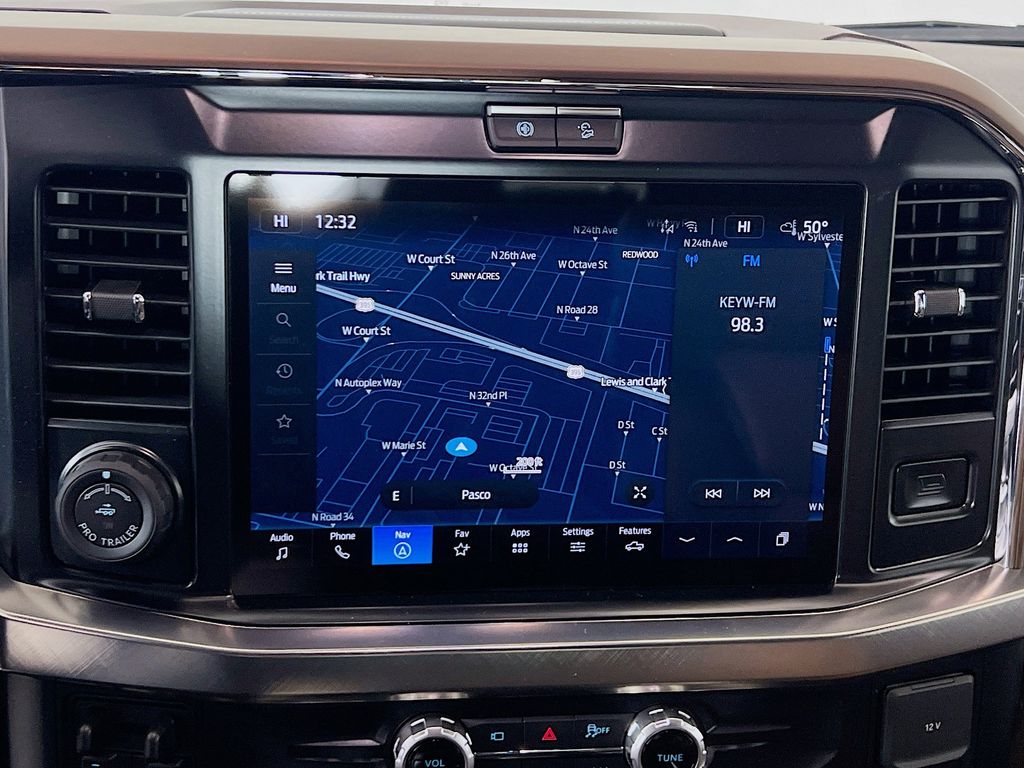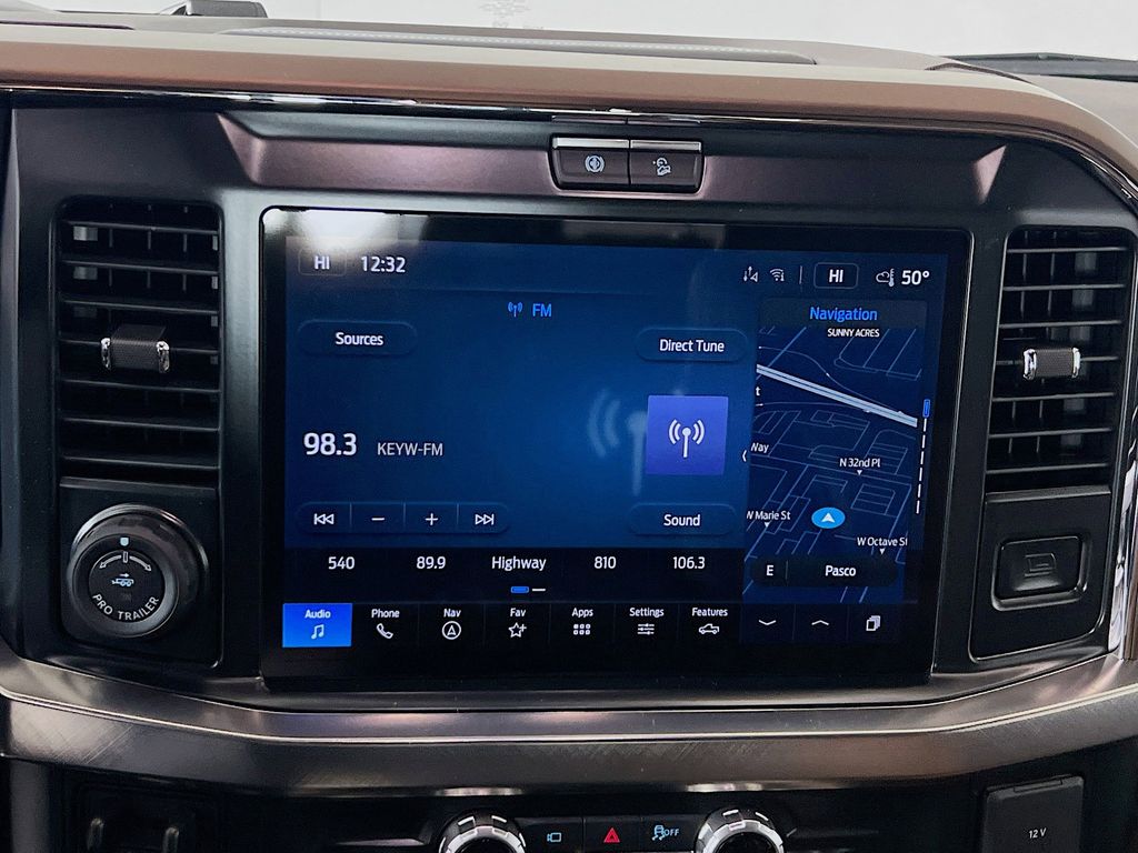 Distinctive Kingsville leather heated/ventilated power front seats and heated rear seats define our King Ranch cabin, complemented by a twin panel sunroof, a heated Kingsville leather power steering wheel, dual-zone automatic climate control, power-adjustable pedals, and a power sliding rear window. Powerful technologies enhance every drive with a 12-inch touchscreen, a 12-inch driver display, connected navigation compatibility, wireless charging, WiFi capability, wireless Apple CarPlay and Android Auto, voice recognition, and the premium B&O Unleashed sound system for an immersive listening experience.