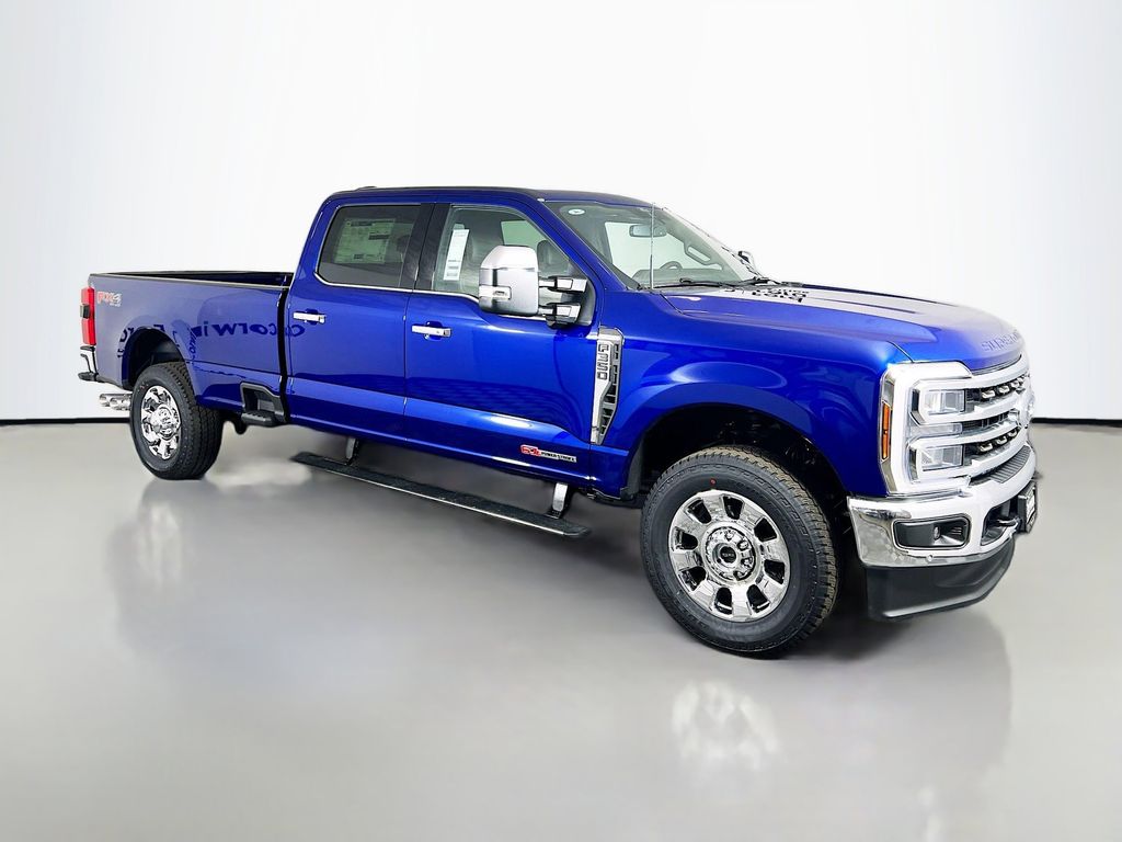 Distinctive and refined, our diesel-powered 2026 Ford F-350 Super Duty King Ranch Crew Cab 4X4 in Argon Blue Metallic blends Western-inspired luxury with commanding presence. Motivated by a TurboCharged 6.7 Liter High Output PowerStroke Diesel V8 supplying 500hp and 1200lb-ft of torque to a 10 Speed Automatic transmission. This Four Wheel Drive truck can easily handle tough conditions on the way to work, and a Pro Power Onboard generator lets you plug in your tools when you get there. Our Ford F-350 turns heads with LED lighting, fog lamps, a power tailgate, power running boards, alloy wheels, and Ford's PowerScope trailer mirrors.