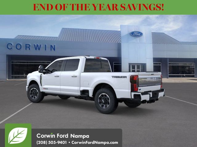 Built for those who demand more, our diesel-driven 2026 Ford F-350 Platinum Crew Cab 4X4 in Star White Metallic Tri-coat delivers relentless power and precision for every challenge. Motivated by a TurboCharged 6.7 Liter High Output PowerStroke Diesel V8 delivering 500hp and 1200lb-ft of torque to a 10 Speed Automatic transmission. That lets our Four Wheel Drive truck tow, haul, and take on your world without sweating. A mighty grille helps you make a bold impression with Ford F-350 details like LED lighting, fog lamps, power running boards, a power tailgate, a Pro Power Onboard generator, and striking alloy wheels.