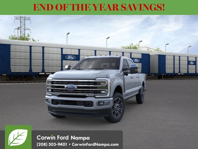 Built for those who demand more, our diesel-driven 2026 Ford F-350 Platinum Crew Cab 4X4 in Glacier Gray Metallic Tri-coat delivers relentless power and precision for every challenge. Motivated by a TurboCharged 6.7 Liter High Output PowerStroke Diesel V8 delivering 500hp and 1200lb-ft of torque to a 10 Speed Automatic transmission. That lets our Four Wheel Drive truck tow, haul, and take on your world without sweating. A mighty grille helps you make a bold impression with Ford F-350 details like LED lighting, fog lamps, power running boards, a power tailgate, a Pro Power Onboard generator, and striking alloy wheels.