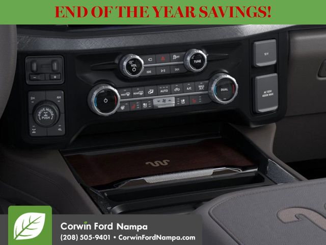 Distinctive Kingsville leather heated/ventilated power front seats and heated rear seats define our King Ranch cabin, complemented by a heated Kingsville leather power steering wheel, dual-zone automatic climate control, power-adjustable pedals, and a power sliding rear window. Powerful technologies enhance every drive with a 12-inch touchscreen, a 12-inch driver display, connected navigation compatibility, wireless charging, WiFi capability, wireless Apple CarPlay and Android Auto, voice recognition, and the premium B&O Unleashed sound system for an immersive listening experience.