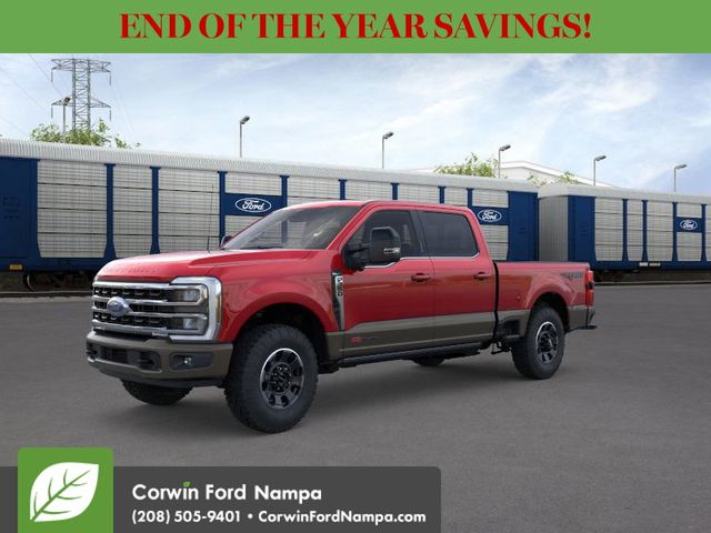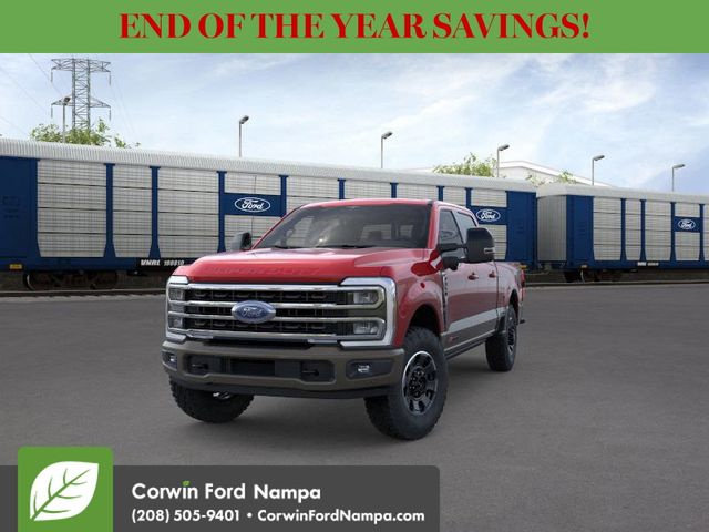 Distinctive and refined, our diesel-powered 2026 Ford F-350 King Ranch Crew Cab 4X4 in Ruby Red Metallic Tinted Clearcoat blends Western-inspired luxury with commanding presence. Motivated by a TurboCharged 6.7 Liter High Output PowerStroke Diesel V8 supplying 500hp and 1200lb-ft of torque to a 10 Speed Automatic transmission. This Four Wheel Drive truck can easily handle tough conditions on the way to work, and a Pro Power Onboard generator lets you plug in your tools when you get there. Our Ford F-350 turns heads with LED lighting, fog lamps, a power tailgate, power running boards, alloy wheels, and Ford's PowerScope trailer mirrors.