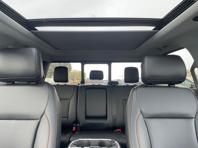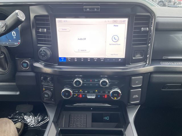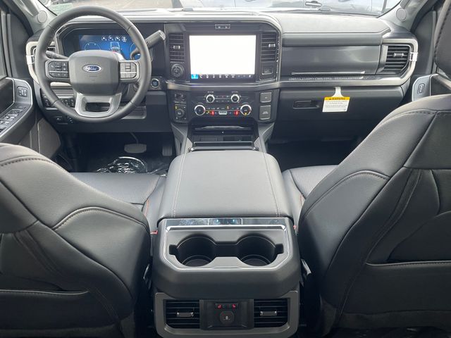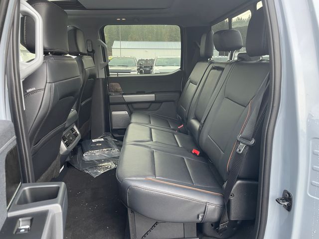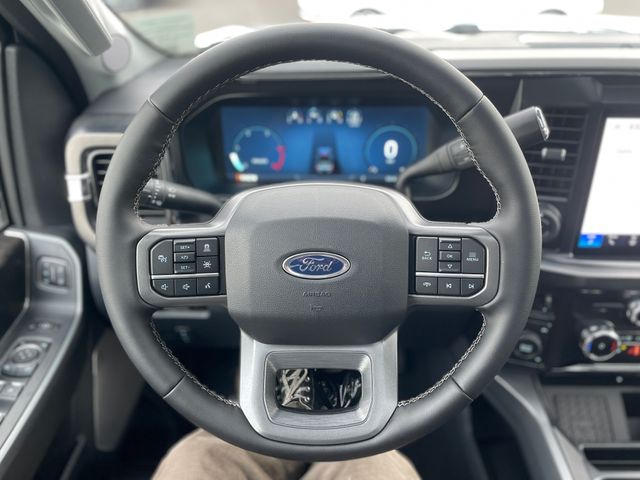 Our Lariat cabin welcomes you with heated/ventilated leather power front seats, a heated leather power steering wheel, dual-zone automatic climate control, power-adjustable pedals, 120V/400W outlets, and a power sliding rear window. The interior resembles a mobile command post with a 12-inch touchscreen, a 12-inch driver display, connected navigation, wireless charging, WiFi compatibility, Apple CarPlay/Android Auto, Bluetooth, voice recognition, and B&O audio.