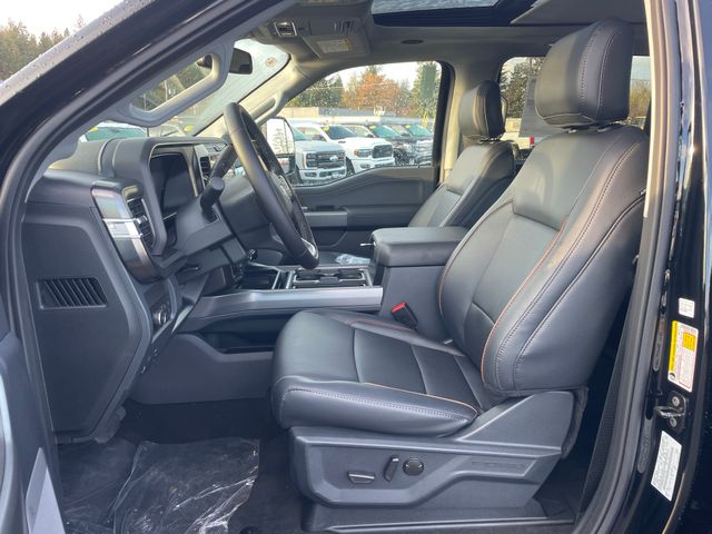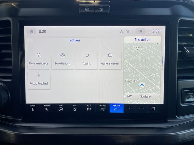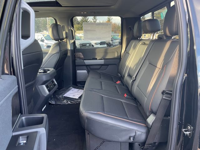 Our Lariat cabin levels up with the rewarding comfort of heated/ventilated leather power front seats, a heated leather power steering wheel, dual-zone automatic climate control, power-adjustable pedals, 120V/400W outlets, and a power sliding rear window. The interior resembles a mobile command post with a 12-inch touchscreen, a 12-inch driver display, connected navigation, wireless charging, WiFi compatibility, Apple CarPlay/Android Auto, Bluetooth, voice recognition, and B&O audio.