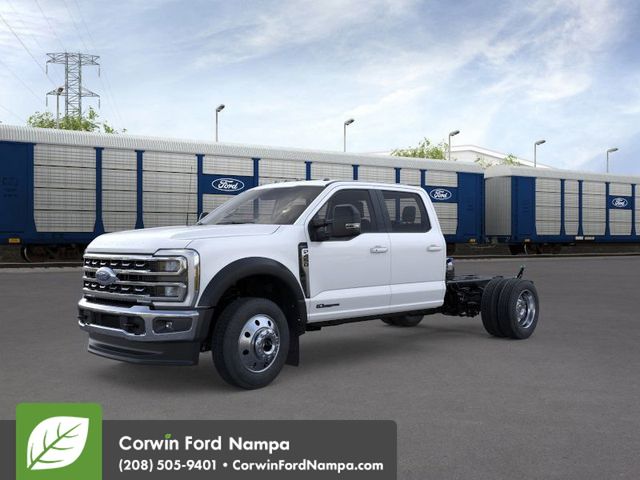 Diesel-powered, our 2026 Ford F-450 Lariat Crew Cab Chassis Cab Dually 4X4 is at your service with Super Duty strength in Star White Metallic Tri-Coat! Driven by a TurboCharged 6.7 Liter PowerStroke V8 delivering 475hp and 1050lb-ft of torque to a 10 Speed Automatic transmission engineered for hard work. A rugged suspension and limited-slip rear differential help boost your confidence with heavy loads, and this Four Wheel Drive truck makes a bold impression on the job or off. The fierce Ford exterior boasts LED lighting, fog lamps, bright side steps, a remote-release tailgate, alloy wheels, a 3-inch hitch receiver, and PowerScope trailer mirrors.