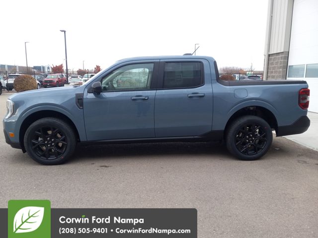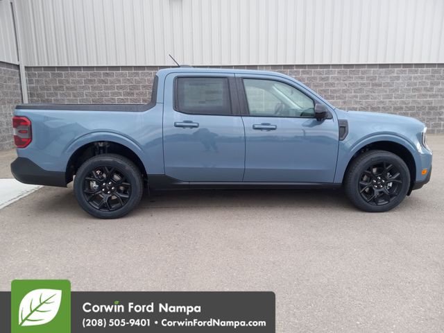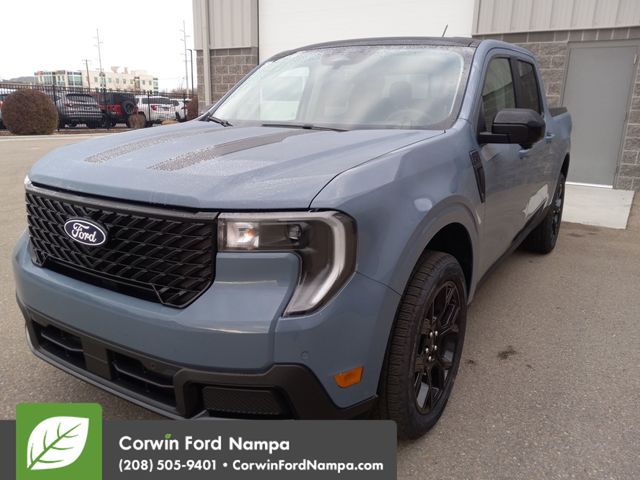 Our 2026 Ford Maverick Lariat SuperCrew AWD with the Black Appearance Pack is a compact truck that's big on luxury in Azure Gray Metallic Tri-Coat! Motivated by a 2.5 Liter 4 Cylinder and an Electric Motor delivering a combined 191hp to a CVT for confident power delivery. This All Wheel Drive truck is also easy to maneuver with agile handling, and it sees nearly 40mpg in the city and nearly 33mpg on the highway. Our Maverick blends true-truck capability with terrific style, showing off LED lighting, a gloss-black grille, a spray-in bedliner, a Flexbed cargo system, and our Appearance Pack for 19-inch black wheels, a painted roof, an exclusive hood decal, and additional black accents.