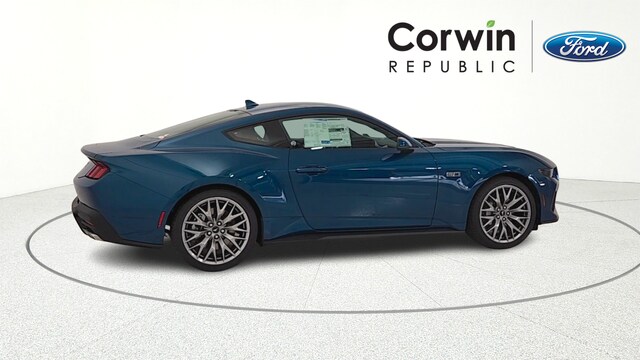 Adriatic Blue 2026 Ford Mustang GT RWD 2D Coupe 5.0L V8 Ti-VCT 6-Speed Manual 15/24 City/Highway MPG