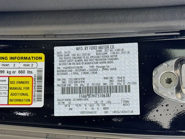EcoBoost EcoBoost 2.3L I4 GTDi DOHC Turbocharged VCT RWD Shadow Black 21/32 City/Highway MPG