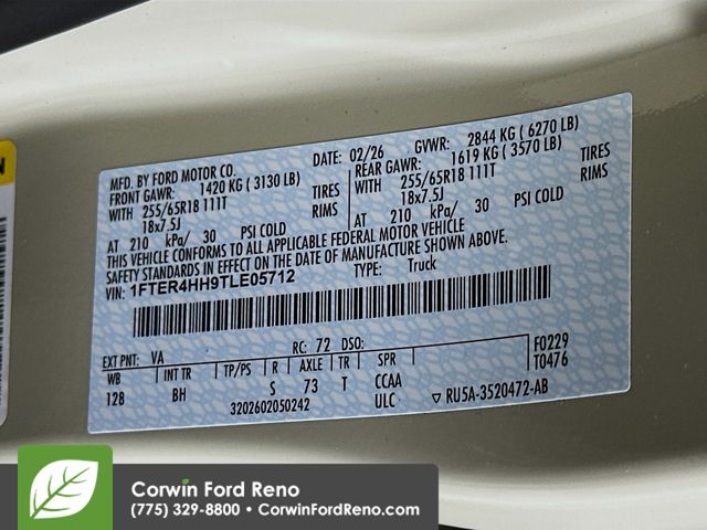 Great Deals are happening now at Corwin Ford Reno. Family owned for over 100 years! Corwin Ford Reno is proud to offer this. 2026 Ford Ranger Factory MSRP: $46,850 $3,420 off MSRP!