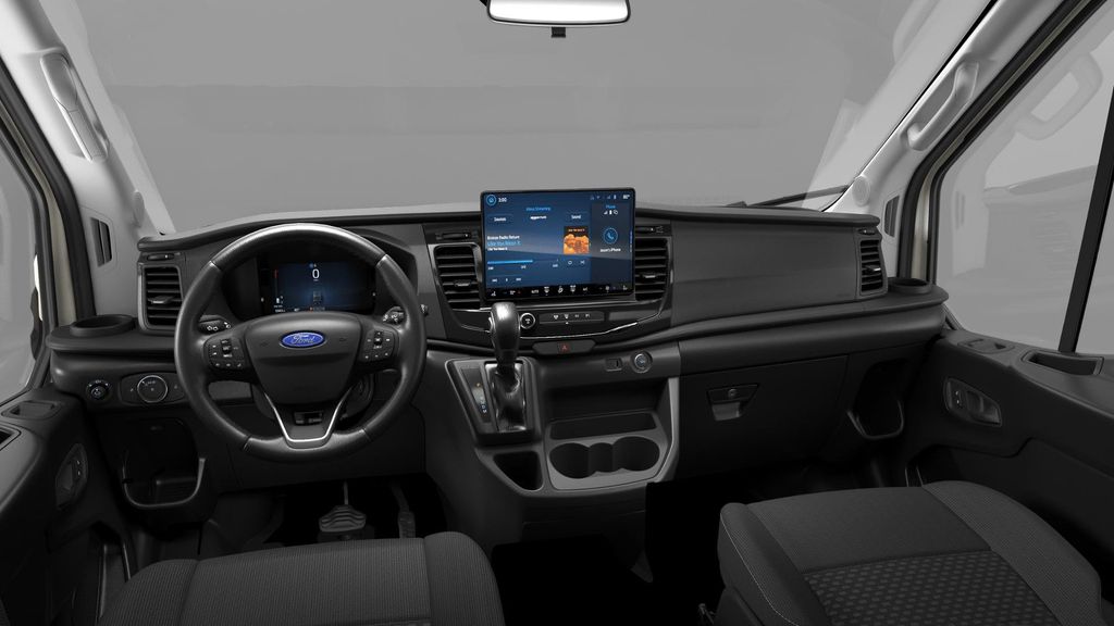 Our XLT cabin keeps you and your passengers fresh and feeling good. It boasts our highest Transit roof, supportive cloth front seats, reclinable rear rows with inboard armrests, a fixed and functional back row, air conditioning, interior lighting, and SYNC 4 infotainment with a 12-inch touchscreen. You can use that or voice control to manage connected navigation compatibility, Apple CarPlay, Android Auto, WiFi compatibility, Bluetooth, voice recognition, and an AM/FM stereo.