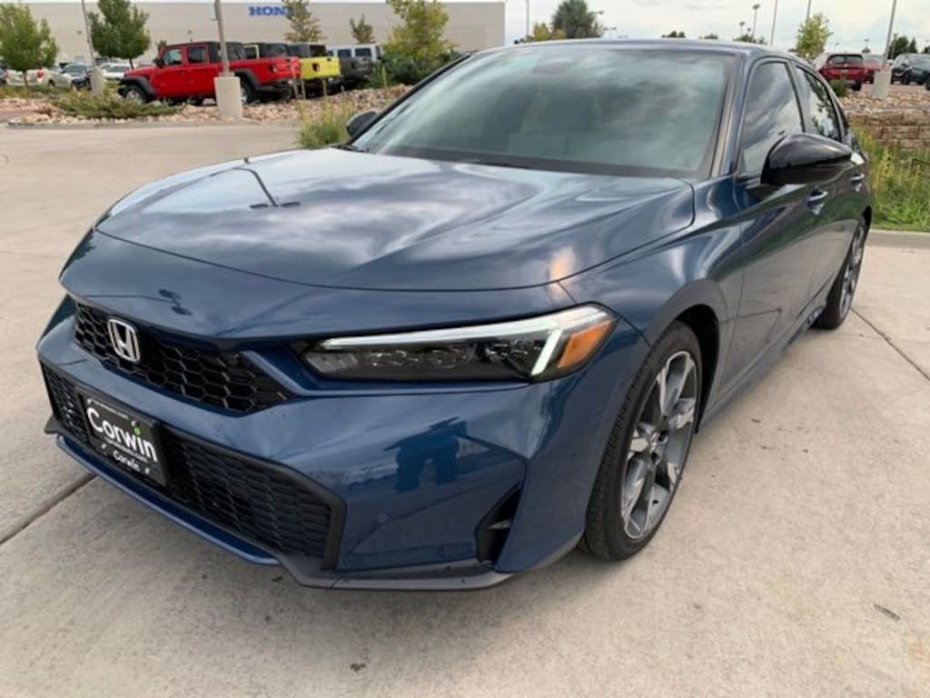 Blue Lagoon Pearl 2026 Honda Civic Hybrid 4D Sedan Sport Touring 2.0L 16V DOHC eCVT FWD 50/47 City/Highway MPG