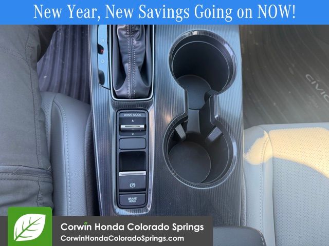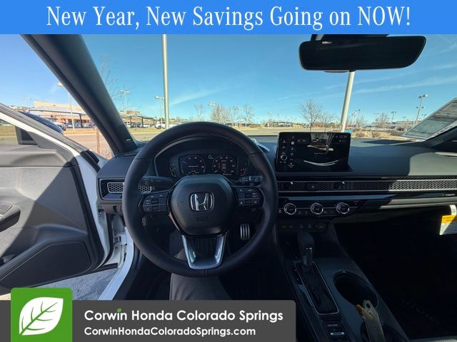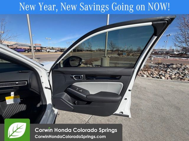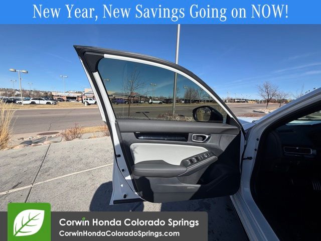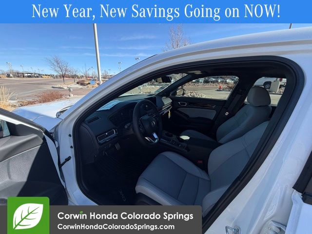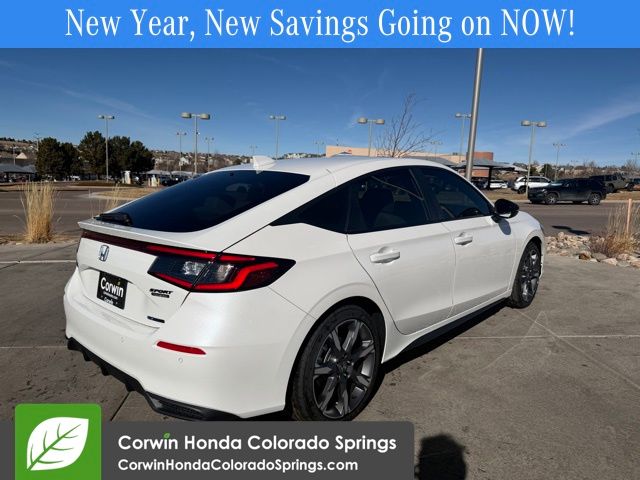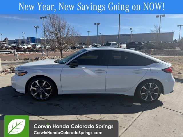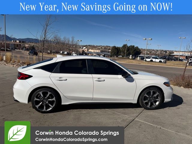 Platinum White Pearl 2026 Honda Civic Hybrid 4D Hatchback Sport Touring 2.0L I4 DOHC 16V eCVT FWD 50/45 City/Highway MPG