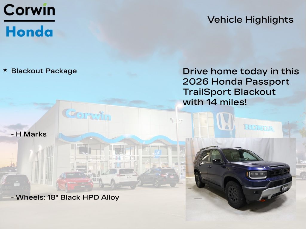 Obsidian Blue Pearl 2026 Honda Passport TrailSport Blackout AWD