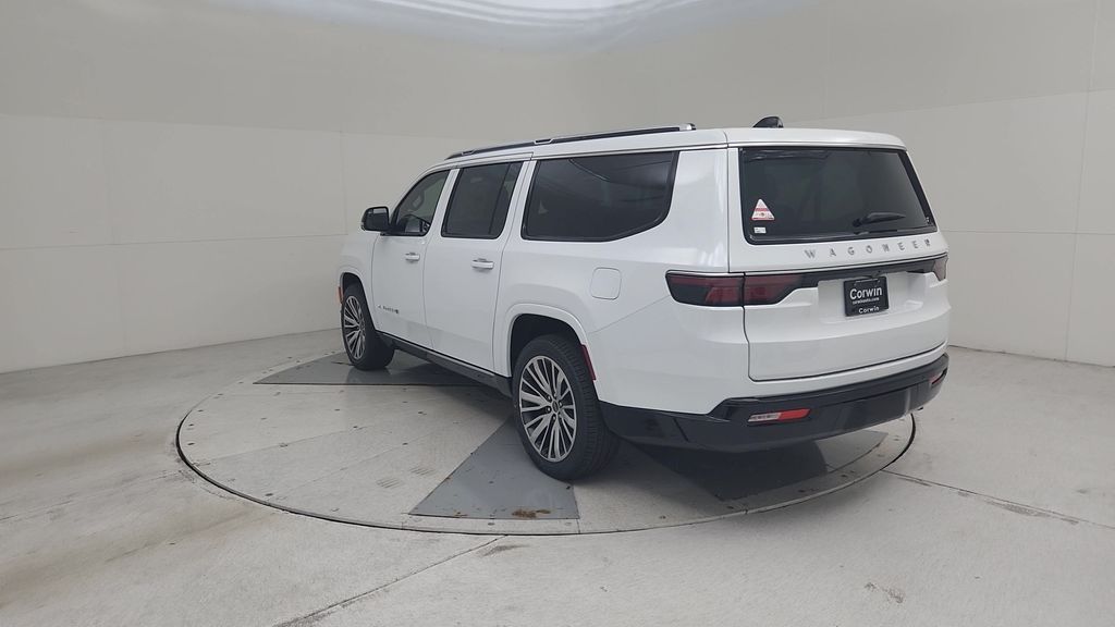 Jeep Wagoneer L that is well equipped and includes these key features and benefits, Collision Avoidance System, Active Parking Assist, Adaptive Cruise Control, Heated and Cooled Seats, Blind-Spot Monitors, Lane Keeping Assist, Navigation System, Adaptive Headlights, Backup Camera, Keyless Access with Push Button Start, Automatic Headlights, Sunroof/Moonroof, 4x4 / 4 Wheel Drive / AWD, 3rd Row Seat/ Third Row / 7 Passenger, 3 Panel Sunroof, Auto Adjust In Reverse Exterior Mirrors, Auto High Beam Headlamp Control, Auto Power Folding Exterior Mirrors, Auto Power-Folding Mirrors, Auto-Dimming Exterior Driver Mirror, Automatic temperature control, Drowsy Driver Detection, Exterior Accents Limited, Exterior Mirrors Approach Lamps, Exterior Mirrors w/Memory, Exterior Mirrors w/Supplemental Signals, Heated Exterior Mirrors, Intersection Collision Assist System, Navigation System, P&P Park & Unpark Assist w/Stop System, Power Deployable Running Boards, Quadra-Lift Air Suspension, Quick Order Package 25L Limited, Radio: Uconnect 5 Nav w/10.1" Display, Semi Active Damping, Side Distance Warning, Surround View Camera System, Traffic Sign Recognition, Wheels: 22" x 9.0" Premium 4 Aluminum.