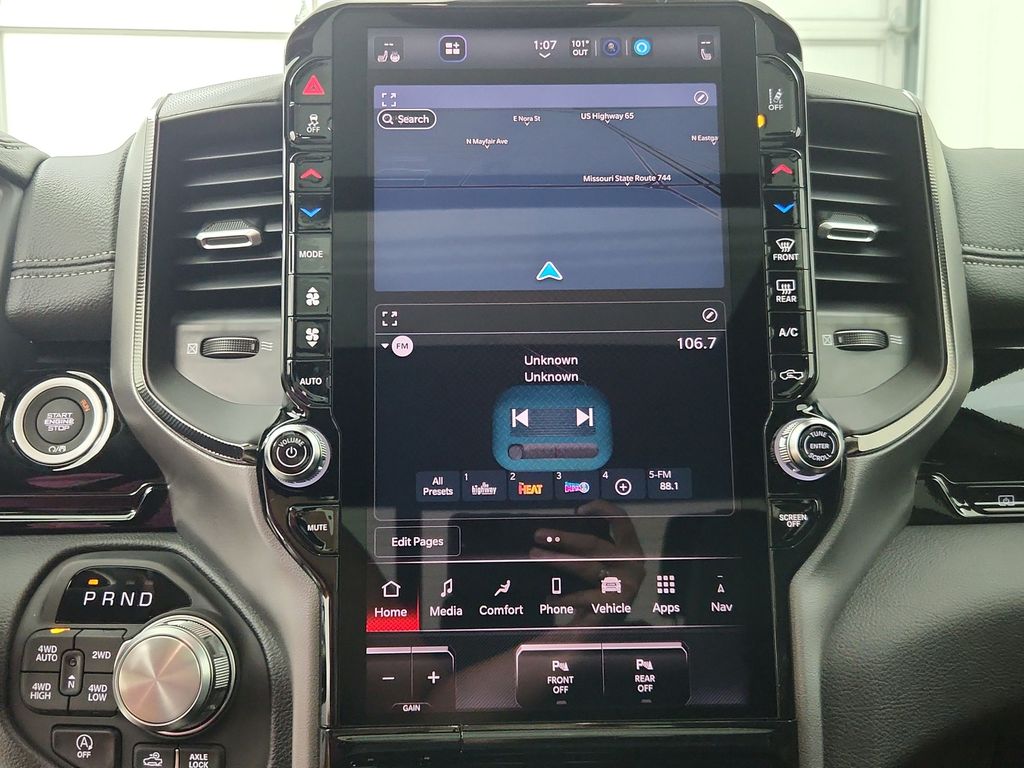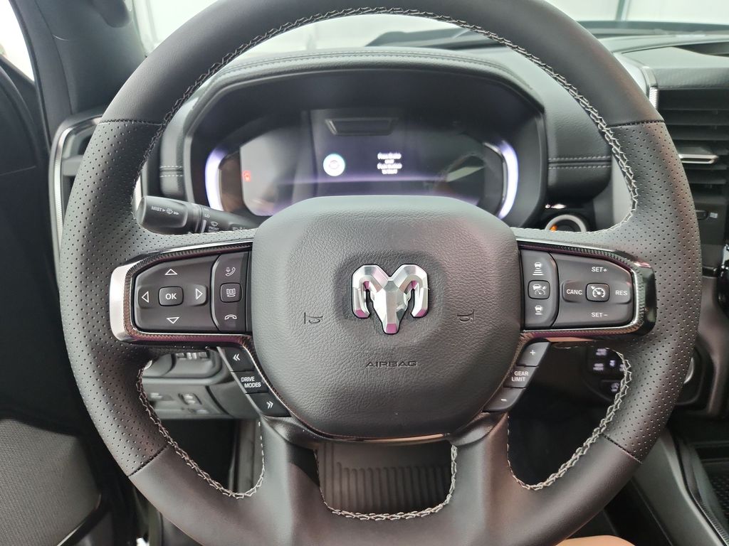 Ram 1500 that is well equipped and includes these key features and benefits, 115V Auxiliary Rear Power Outlet, 14.4" Touchscreen Display, 2-Door Passive Entry, Front Door Locks, 4G LTE Wi-Fi Hot Spot, Accent Color Door Handles, Accent Color Premium Power Mirrors, Accent Color Tailgate Handle, Apple CarPlay, Auto Power-Folding Mirrors, Auto-Dimming Exterior Driver Mirror, Bed Utility Group, Black Painted Exterior Mirrors Caps, Connectivity - US/Canada, Convex Wide-Angle Exterior Mirror Insert, Disassociated Touchscreen Display, Driver Seat Memory, Dual Wireless Charging Pad, Exterior 115V AC Outlet, Exterior Mirrors Approach Lamps, Exterior Mirrors Courtesy Lamps, Front Passenger Interactive Display, Google Android Auto, GPS Antenna Input, GPS Navigation, HD Radio, Heated Second Row Seats, Integrated Center Stack Radio, MOPAR 4 Adjustable Cargo Tie-Down Hooks, Navigation System, Off-Road Information Pages, Power 2-Way Passenger Lumbar Adjust, Power Adjust 8-Way Front Passenger Seat, Power Tailgate, Proximity Approach/Departure Lamps, Quick Order Package 21W Rebel, Radio/Driver Seat/Mirrors/Pedals Memory, Rain Sensitive Windshield Wipers, Rear Window Defroster, Rebel Level 2 Equipment Group, Security Alarm, SiriusXM Radio Service, USB Host Flip.