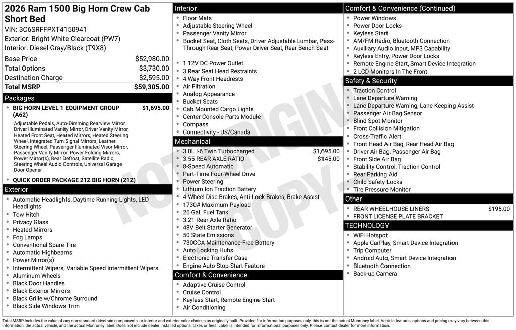 This vehicle glistens in the crowded pickup truck segment! A turbocharger further enhances performance, while also preserving fuel economy. The following features are included: automatic dimming door mirrors, adjustable pedals, and a split folding rear seat. It features an automatic transmission, 4-wheel drive, and a 3 liter 6 cylinder engine.