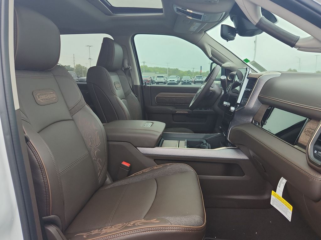 Ram 3500 that is well equipped and includes these key features and benefits, Active Lane Management System, Adaptive Steering System, Digital Rearview Mirror, Drowsy Driver Detection, LED Bed Lighting, Longhorn Badge, Longhorn Instrument Cluster Theme 3, Longhorn Level 1 Equipment Group, Navigation System, Power Deployable Running Boards, Premium Door Trim Panel, Premium Filigree Leather Seats, Quick Order Package 24K Longhorn, Surround View Camera System, Traffic Sign Recognition, Trailer Reverse Guidance, Trailer Tire Pressure Monitoring System, Warm Chrome Key Fob.