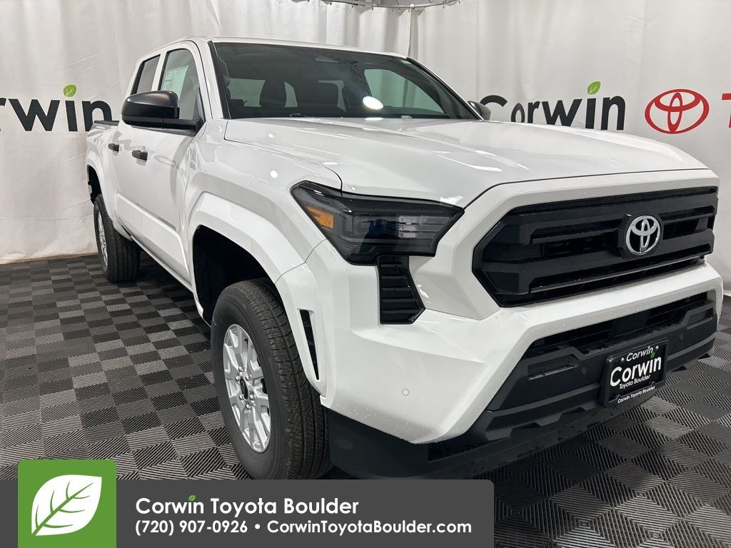Built for bold beginnings, our 2025 Toyota Tacoma SR Double Cab 4X4 in Ice Cap combines rugged design, dependable performance, and versatile capability, perfect for drivers ready to take on everyday tasks and daring weekend adventures! Motivated by a TurboCharged 2.4 Liter i-Force 4 Cylinder offering 228hp connected to an 8 Speed Automatic transmission engineered for robust capability pulling heavy loads or pushing ahead with your busy days. This Four Wheel Drive truck also scores nearly 26mpg on the highway and features an automatic limited slip differential for top-notch traction. Our Tacoma's rugged good looks grab attention with a fierce grille, distinctive LED lighting, 17-inch wheels, and a Sheet Molded Compound bed built for heavy use.