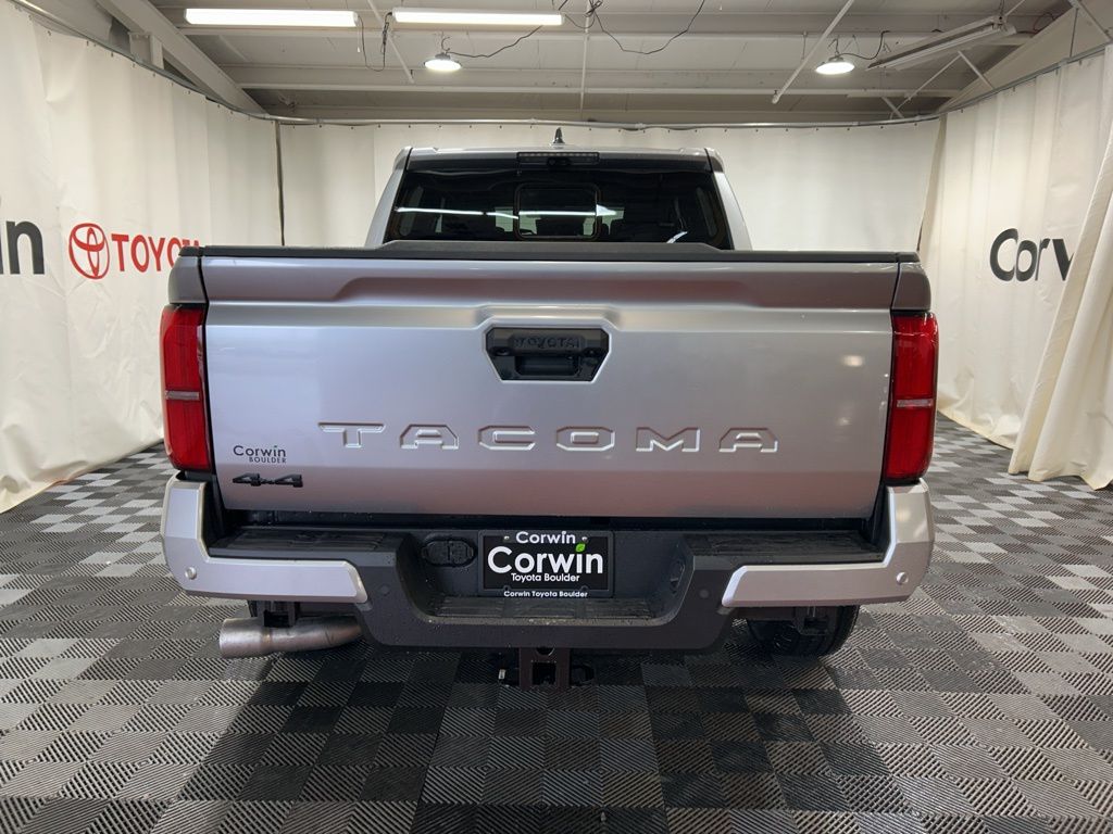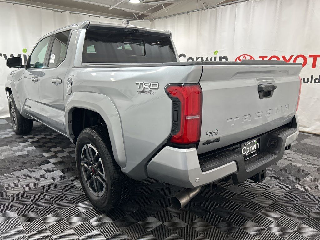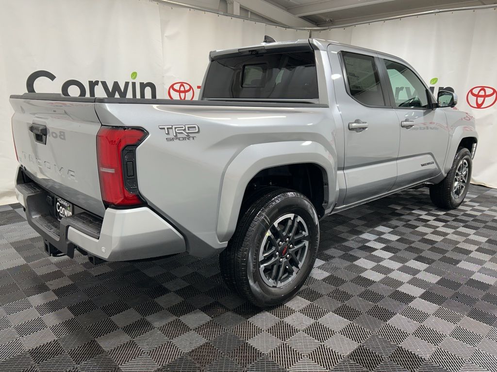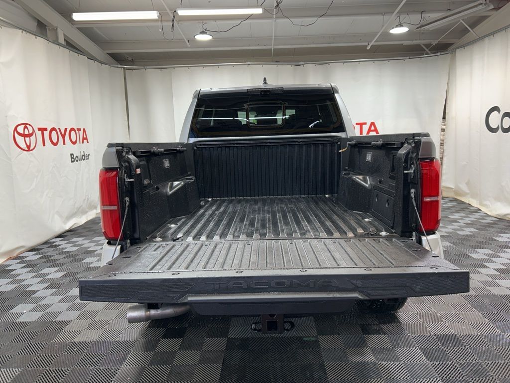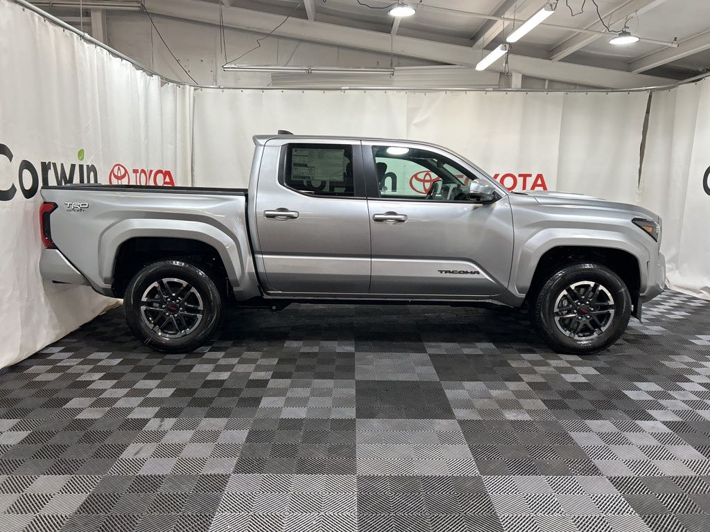 Built to conquer, our 2025 Toyota Tacoma TRD Sport Double Cab 4X4 in Celestial Silver Metallic challenges you to push your limits with rugged off-road capability, bold design, and performance! Powered by a TurboCharged 2.4 Liter i-FORCE 4 Cylinder delivering 278hp to an 8 Speed Automatic transmission with a 2-speed transfer case and an automatic limited-slip differential. This Four Wheel Drive truck returns nearly 24mpg on the highway. Rugged and robust, our Tacoma shows off LED lighting, fog lamps, 18-inch alloy wheels, LED bed lighting, a stamped easy-lower tailgate, a 400W/120V power supply, and a Class IV hitch receiver.