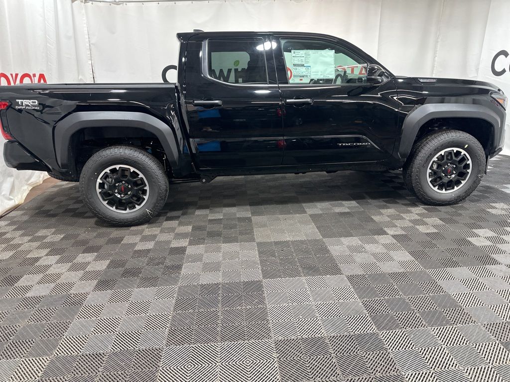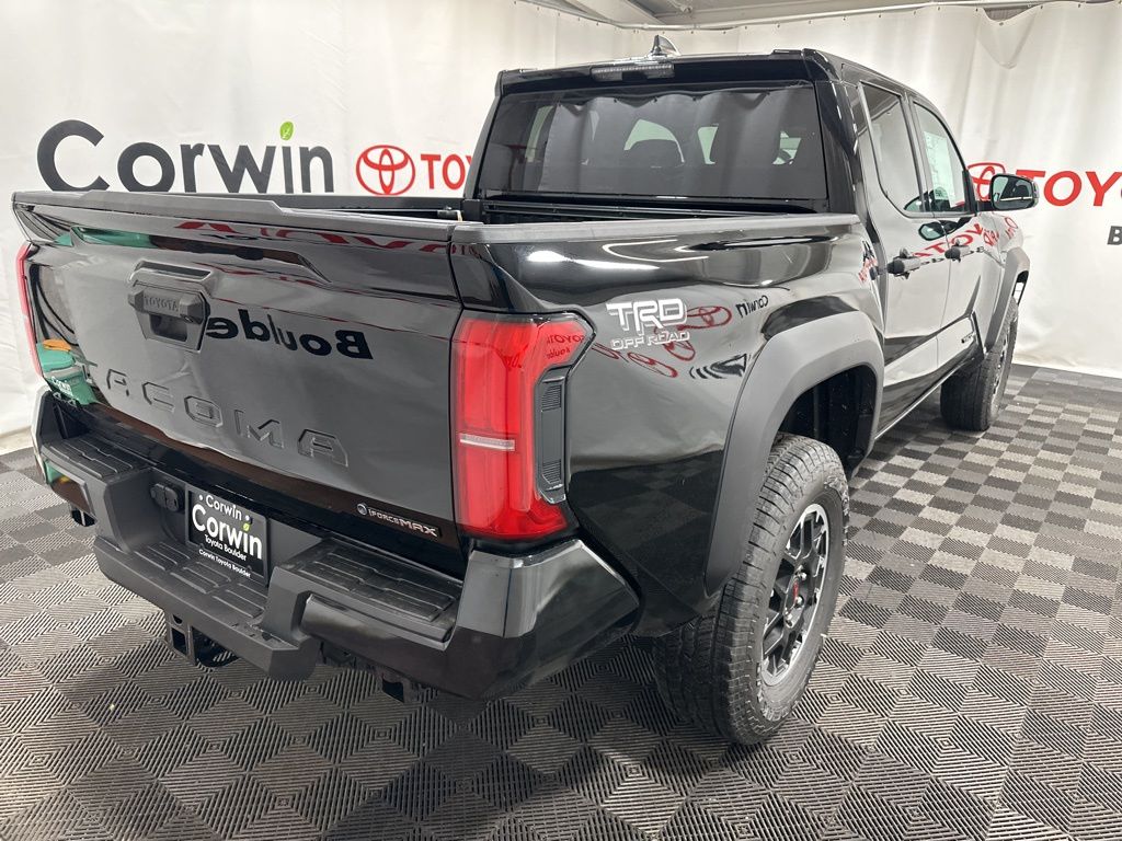 Ignite your off-road passion with our fierce 2025 Toyota Tacoma TRD Off-Road Double Cab 4X4 in Black, a top-performing trail truck built with rugged 4WD capability, terrain-ready tech, and Toyota's legendary durability to take on any adventure with confidence! Motivated by a TurboCharged 2.4 Liter i-FORCE 4 Cylinder delivering 270hp to a 6 Speed Manual transmission for serious adventure advantages. This Four Wheel Drive truck is tuned up by Toyota Racing Development with crawl control, Multi-Terrain Select, and a 2-speed transfer case, and it scores nearly 23mpg on the highway. A trail-friendly exterior is standard with LED lighting, fog lamps, a composite front skid plate, alloy wheels, a Class IV hitch receiver, and a 400W/120V power outlet.