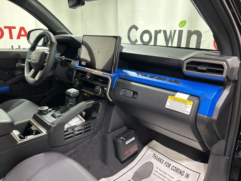 Ignite your off-road passion with our fierce 2025 Toyota Tacoma TRD Off-Road Double Cab 4X4 in Black, a top-performing trail truck built with rugged 4WD capability, terrain-ready tech, and Toyota's legendary durability to take on any adventure with confidence! Motivated by a TurboCharged 2.4 Liter i-FORCE 4 Cylinder delivering 270hp to a 6 Speed Manual transmission for serious adventure advantages. This Four Wheel Drive truck is tuned up by Toyota Racing Development with crawl control, Multi-Terrain Select, and a 2-speed transfer case, and it scores nearly 23mpg on the highway. A trail-friendly exterior is standard with LED lighting, fog lamps, a composite front skid plate, alloy wheels, a Class IV hitch receiver, and a 400W/120V power outlet.