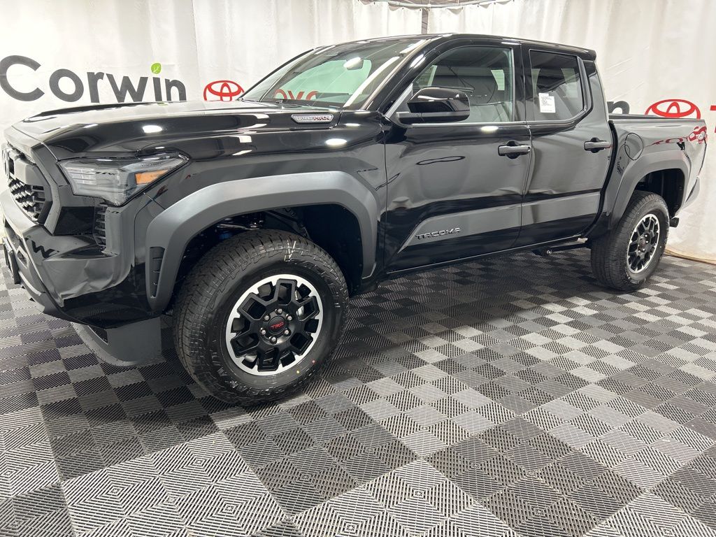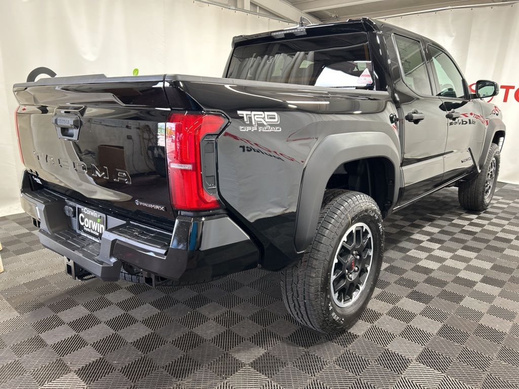 Ignite your off-road passion with our fierce 2025 Toyota Tacoma TRD Off-Road Double Cab 4X4 in Black, a top-performing trail truck built with rugged 4WD capability, terrain-ready tech, and Toyota's legendary durability to take on any adventure with confidence! Motivated by a TurboCharged 2.4 Liter i-FORCE 4 Cylinder delivering 270hp to a 6 Speed Manual transmission for serious adventure advantages. This Four Wheel Drive truck is tuned up by Toyota Racing Development with crawl control, Multi-Terrain Select, and a 2-speed transfer case, and it scores nearly 23mpg on the highway. A trail-friendly exterior is standard with LED lighting, fog lamps, a composite front skid plate, alloy wheels, a Class IV hitch receiver, and a 400W/120V power outlet.