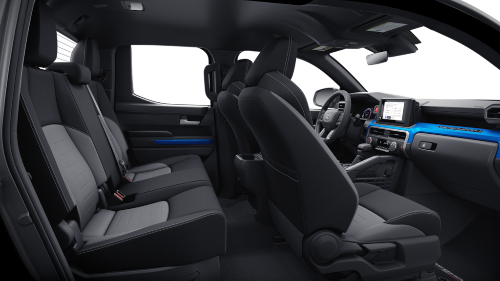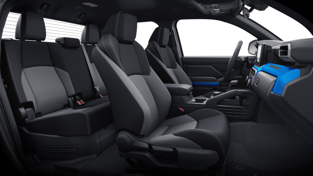 Our Off-Road cabin is comfortable, thanks to supportive cloth heated front seats, a leather-wrapped steering wheel, automatic climate control, keyless access, pushbutton ignition, and rear under-seat storage for extra versatility. When you want to connect, an 8-inch touchscreen, a 7-inch driver display, WiFi compatibility, Android Auto, Apple CarPlay, voice control, Bluetooth, and a six-speaker sound system are standard.