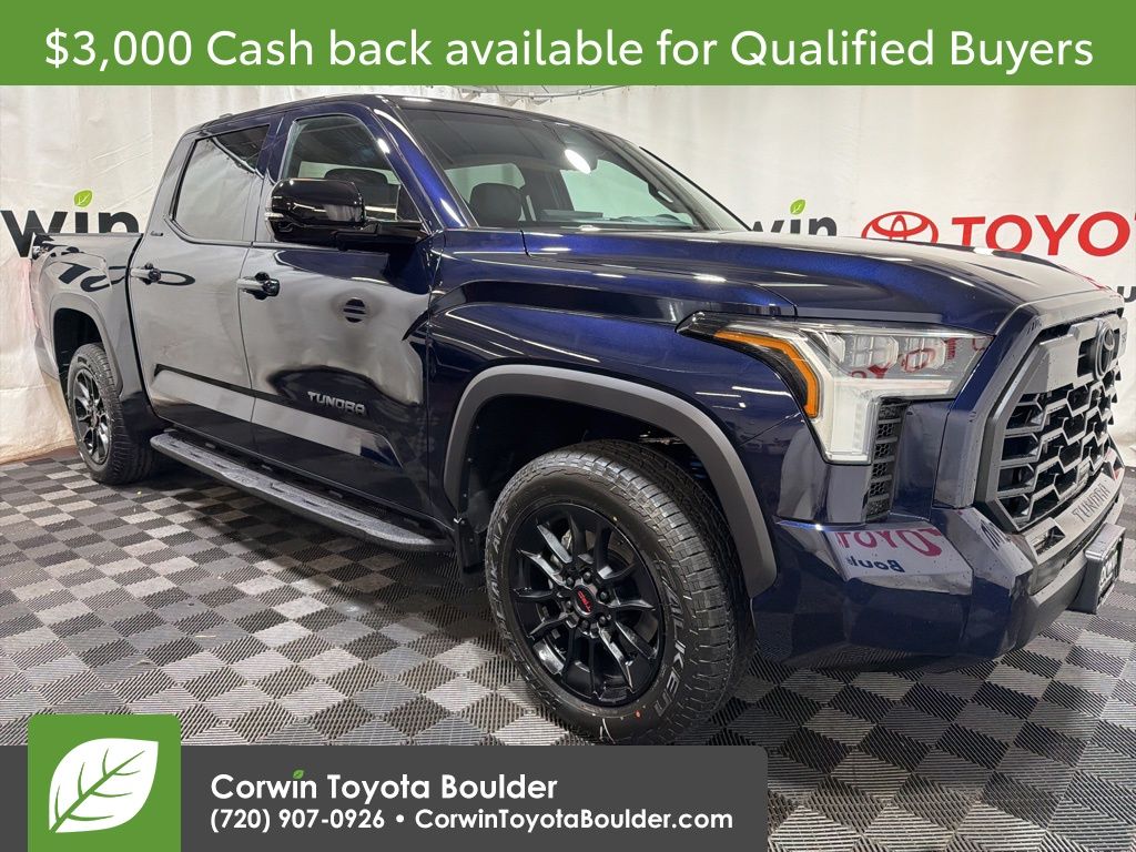 Blue 2026 Toyota Tundra 4D CrewMax Limited In Transit 3.4L V6 10-Speed Automatic 4WD 17/22 City/Highway MPG