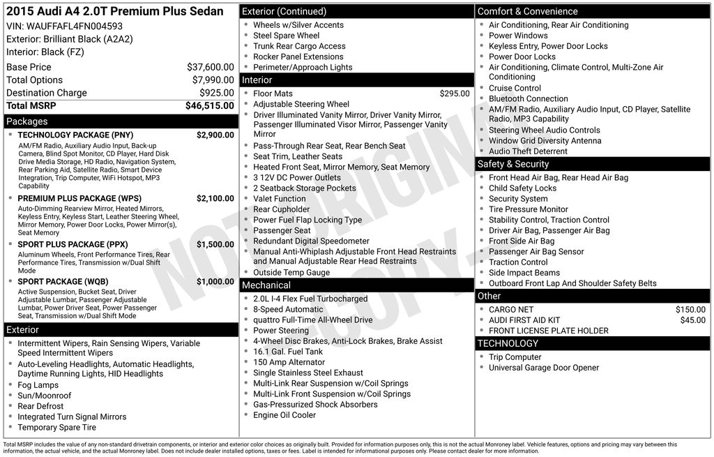 2015 Brilliant Black Audi A4 2.0T Premium Plus