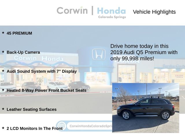 Priced below KBB Fair Purchase Price! 2019 Black Metallic Audi Q5 2.0T Premium quattro