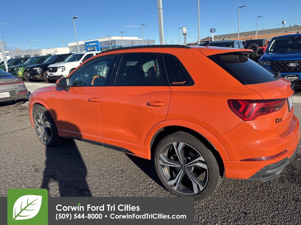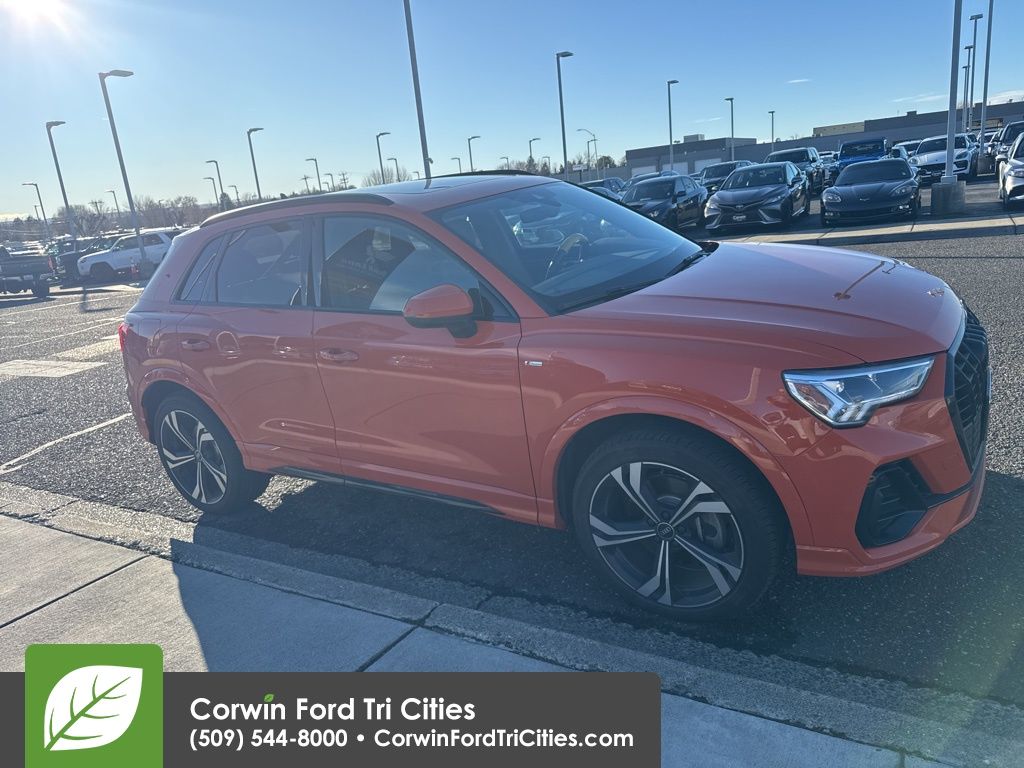 Our sophisticated, Accident Free 2023 Audi Q3 Premium Plus quattro in Pulse Orange is a smart choice for chasing adventure! Motivated by a TurboCharged 2.0 Liter 4 Cylinder that serves up 228hp paired to a paddle-shifted 8 Speed Tiptronic Automatic transmission for sporty performance. This All Wheel Drive SUV pushes through harsh conditions with calm confidence and achieves nearly 28mpg on the highway. Our sure-footed Q3 shows a bold presence with a panoramic sunroof, LED lighting, aluminum roof rails, a rear spoiler, a hands-free liftgate, heated power-folding mirrors, and alloy wheels.