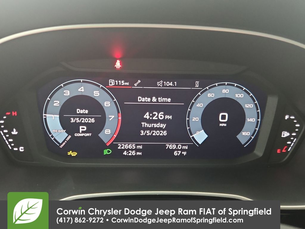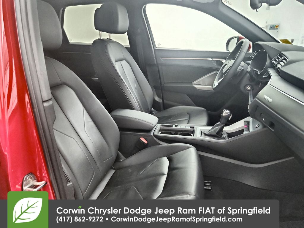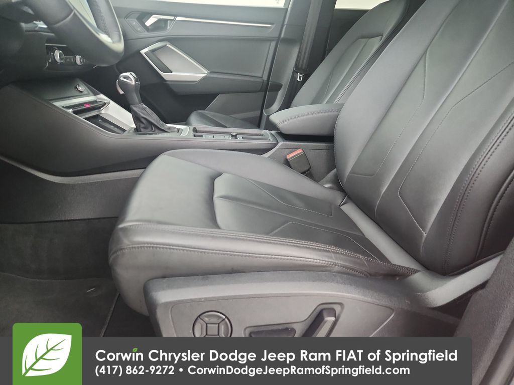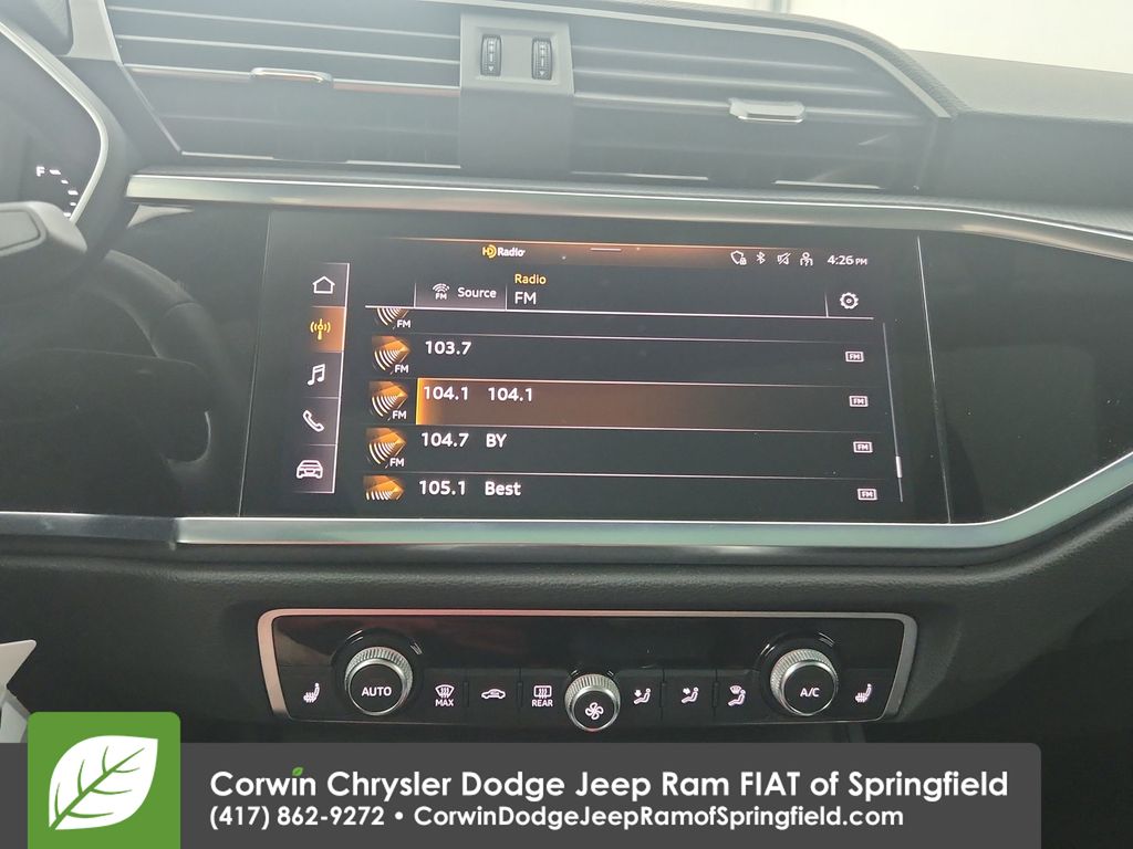 The interior of this Q3 is equally impressive, featuring a panoramic sunroof, a power liftgate, and a premium Audi Sound System. The leather-wrapped steering wheel, heated front seats, and dual-zone automatic climate control provide a refined and comfortable cabin environment. The Audi smartphone interface with Apple CarPlay and Android Auto ensures seamless integration with your digital life.