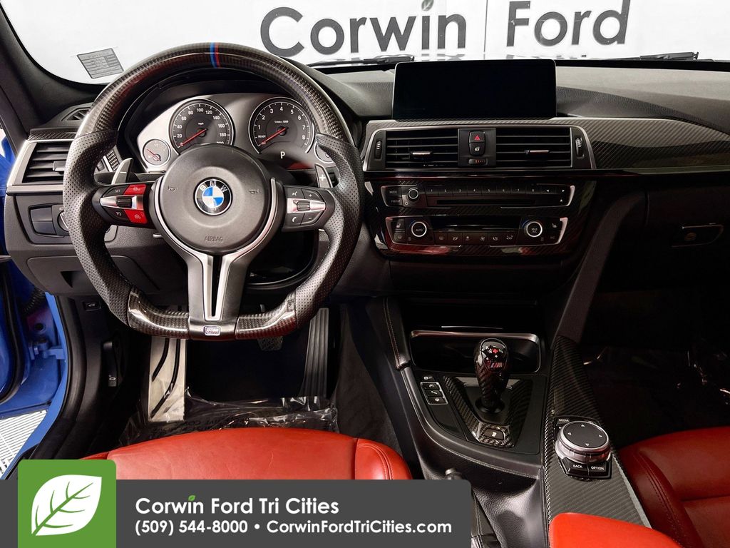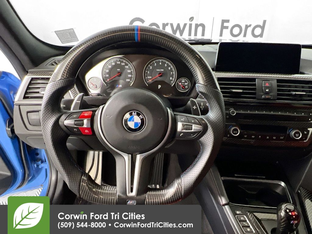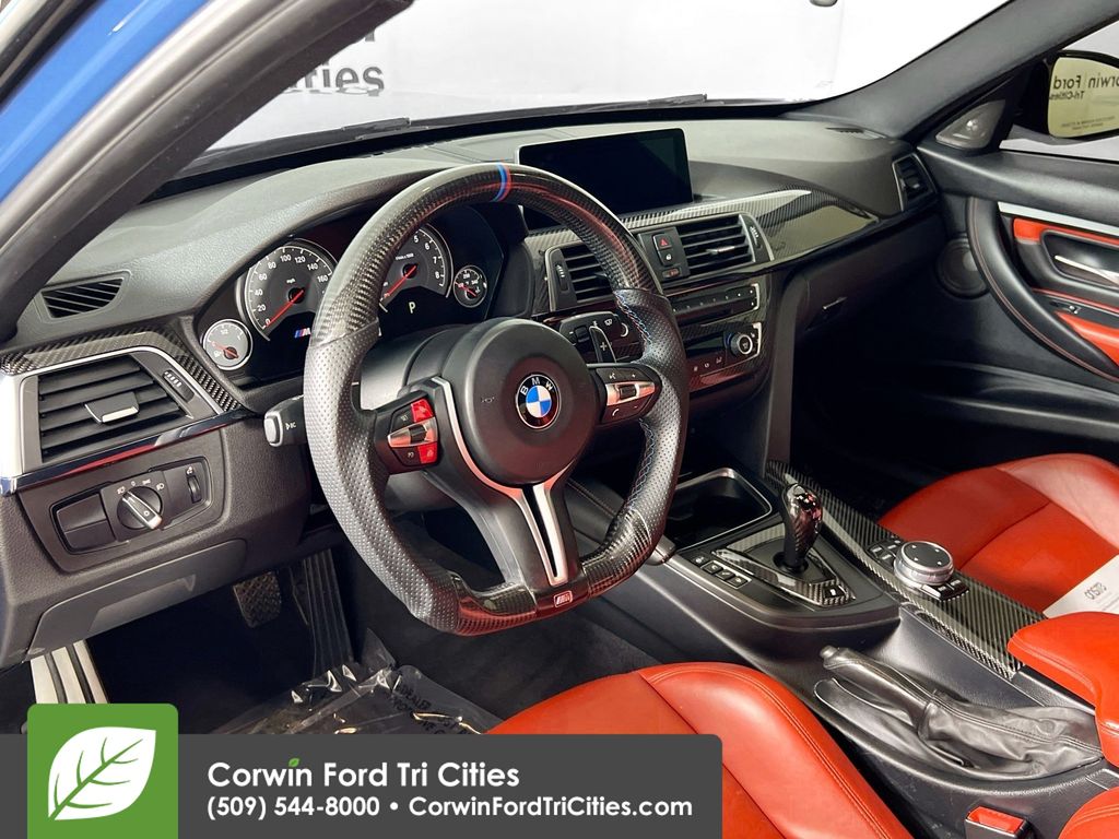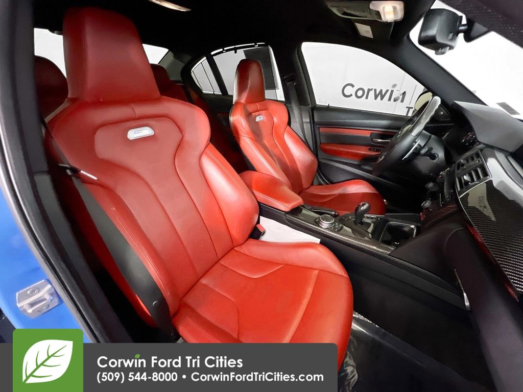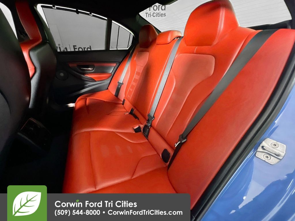 Our Accident Free 2016 BMW M3 in Marina Blue is faster, lighter, and more fun to drive than ever! Powered by a Twin TurboCharged 3.0 Liter 6 Cylinder that delivers 425hp with a paddle-shifted 7 Speed dual-clutch Automated Manual transmission that provides instantaneous track-inspired shifts. This phenomenal combination enables our Rear Wheel Drive Sedan to hit 60mph in 3.9 seconds while scoring nearly 26mpg on the highway! Emanating confidence and athleticism, the powerful aesthetic of our BMW are impossible to ignore with unique wheels and flaring wheel arches.