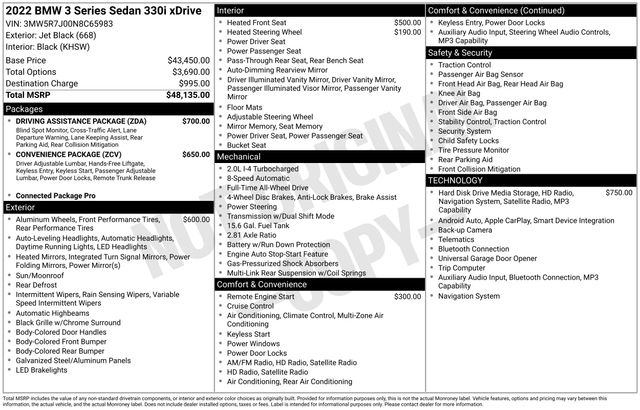 This 3 Series also features a host of premium amenities, including Remote Engine Start, 19-inch Double-Spoke Bi-Color Orbit Grey wheels, and the Live Cockpit Pro with Navigation system. The Convenience Package and Driving Assistance Package provide added convenience and safety features, ensuring a seamless and confident driving experience.