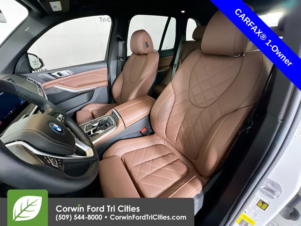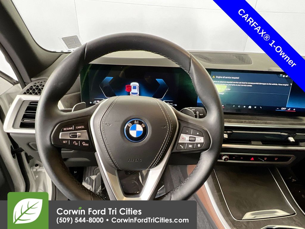 Our Accident Free, One Owner 2024 BMW X5 xDrive50e Sport is all about electrifying confidence in Mineral White Metallic! Motivated by a TurboCharged 3.0 Liter TwinPower 6 Cylinder and an Electric Motor supplying a combined 483hp to a paddle-shifted 8 Speed Automatic transmission for rocket-like runs to 60mph in 4.6 seconds. This All Wheel Drive SUV can also plug in for nearly 39 miles of EV travel at nearly 58MPGe combined, and it can go hundreds of more miles in gas-hybrid mode. You can ride with style and substance thanks to active dampers, an air suspension, and our X5's LED lighting, panoramic sunroof, heated power-folding mirrors, roof rails, and 20-inch alloy wheels.