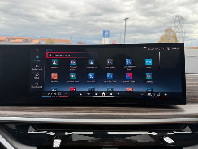 Inside our X5 M60i enjoy heated/ventilated front Sensafin seats, power front seats, wood trim, a curved 12.3-inch driver display and matching large touchscreen, wireless Apple CarPlay®/Android Auto®, Bluetooth®, wireless charging, Harman Kardon audio, and keyless access with pushbutton start.