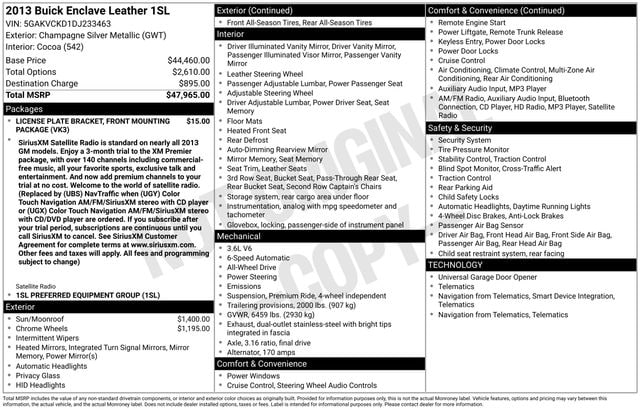 Backed by Buick's reputation for quality and reliability, this 2013 Enclave Leather Group is a smart investment that will serve you well for years to come. Experience the difference for yourself and schedule a test drive today. We're confident you'll be impressed by the exceptional value and driving experience this Enclave has to offer.