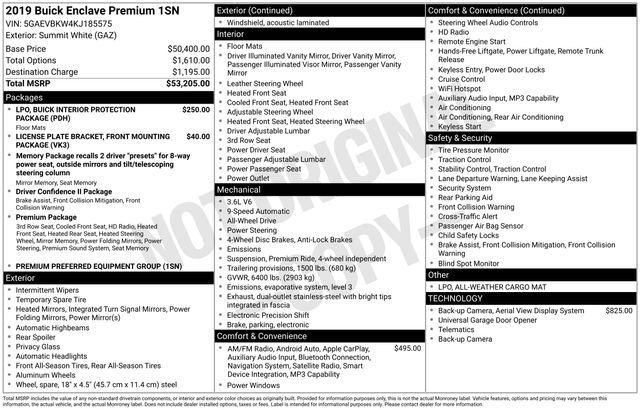 2019 Buick Enclave Premium Group AWD 9-Speed Automatic 3.6L V6 SIDI VVT Summit White