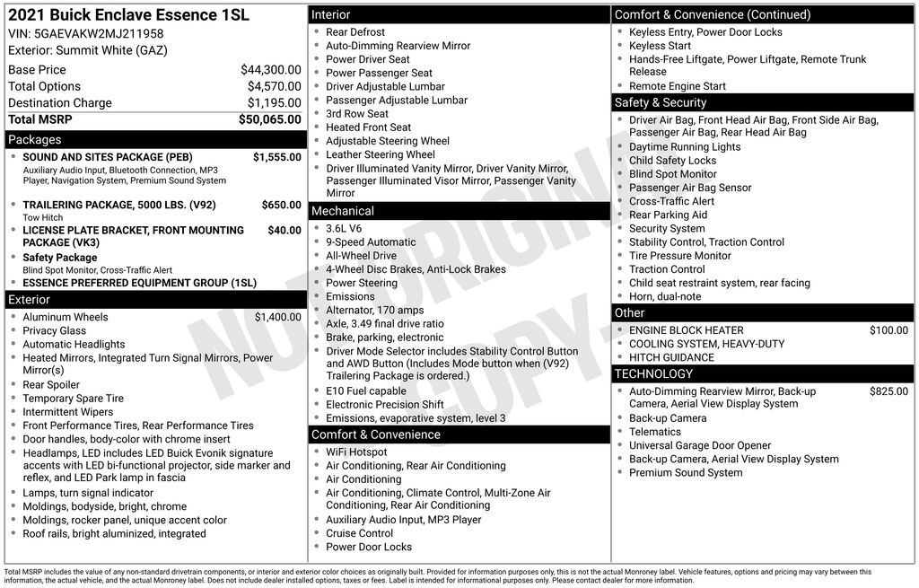 Whether you're commuting, running errands, or embarking on a family road trip, the 2021 Buick Enclave Essence is the perfect companion. Experience the perfect blend of luxury, capability, and technology that will elevate your driving experience. Visit our showroom today and let us demonstrate how the Enclave Essence can enhance your life.