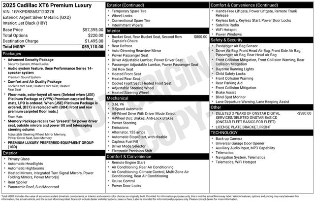 Step inside the XT6 Premium Luxury and be captivated by the impeccable attention to detail. Luxurious Leather Seating Surfaces with Mini-Perforated Inserts, Heated and Ventilated Front Seats, and a Heated Steering Wheel create an unparalleled level of comfort. The Dual-Zone Automatic Climate Control and Rear Air Conditioning ensure that every passenger enjoys a personalized climate, while the Bose Performance Series Audio System with 14 Speakers delivers a concert-hall-like listening experience.