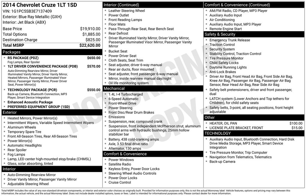 With its impressive combination of efficiency, technology, and style, this 2014 Chevrolet Cruze 1LT is an exceptional value in the pre-owned market. Experience the difference for yourself and schedule a test drive today. We're confident you'll be impressed by the Cruze's exceptional blend of features and performance.