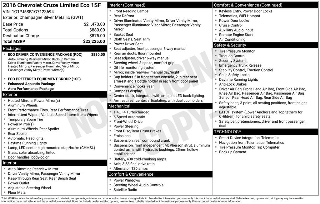 Discover the perfect blend of efficiency and style with this 2016 Chevrolet Cruze Limited ECO. This well-equipped compact sedan delivers an impressive 39 highway MPG, making it an excellent choice for the eco-conscious driver. Let's explore the features that make this Cruze Limited ECO stand out.
