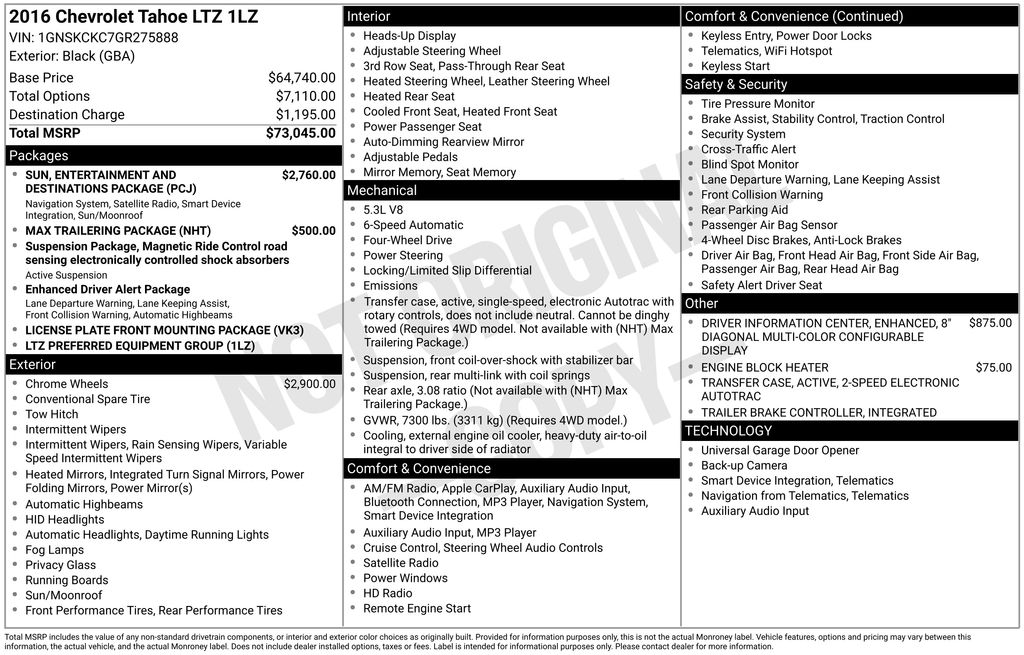 EMBRACE THE SHORTEST MONTH OF THE YEAR WITH CORWIN CHRYSLER DODGE JEEP RAM OF FARGO! WE HAVE SAVINGS ON ALL OF OUR PRE-OWNED VEHICLES AVAILABLE!! WE HAVE ONE OF THE LARGEST SELECTIONS OF INVENTORIES IN OUR AREA AT ONE SINGLE LOCATION!! Recent Arrival! Priced below KBB Fair Purchase Price! Black 2016 Chevrolet Tahoe LTZ 4D Sport Utility 4WD EcoTec3 5.3L V8 CARFAX One-Owner.
