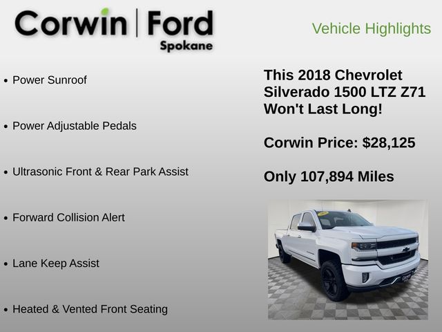 With its striking white exterior and well-equipped interior, this 2018 Chevrolet Silverado 1500 LTZ 2LZ is a true standout in the full-size truck segment. Experience the perfect blend of power, capability, and premium features by scheduling a test drive today. We're confident you'll be impressed by the exceptional value and driving dynamics this Silverado has to offer.