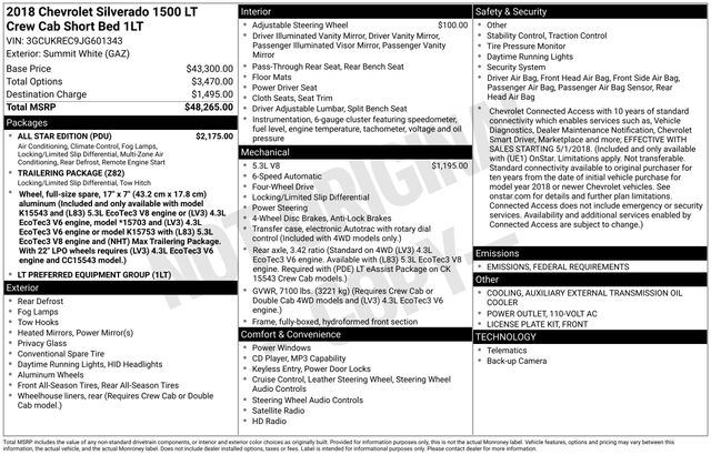 2018 Chevrolet Silverado 1500 LT LT1 4WD 6-Speed Automatic Electronic with Overdrive EcoTec3 5.3L V8 Summit White